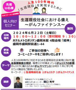 2024年6月22日(土)にホテルメトロポリタン盛岡にて、ネオファースト生命提携セミナー「生涯現役社会における備え~がんファイナンス~」を開催させていただきました!